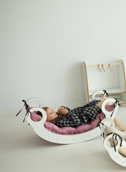 Regelmäßiges Spielen auf der Wippe unterstützt die motorische Koordination, fördert Gleichgewicht, Geschwindigkeit und Beweglichkeit und trägt positiv zur psychomotorischen Entwicklung des Kindes bei. Die Wippe ist eine ideale Alternative zu Plastikspielzeug und passt perfekt in jedes moderne Kinderzimmer.