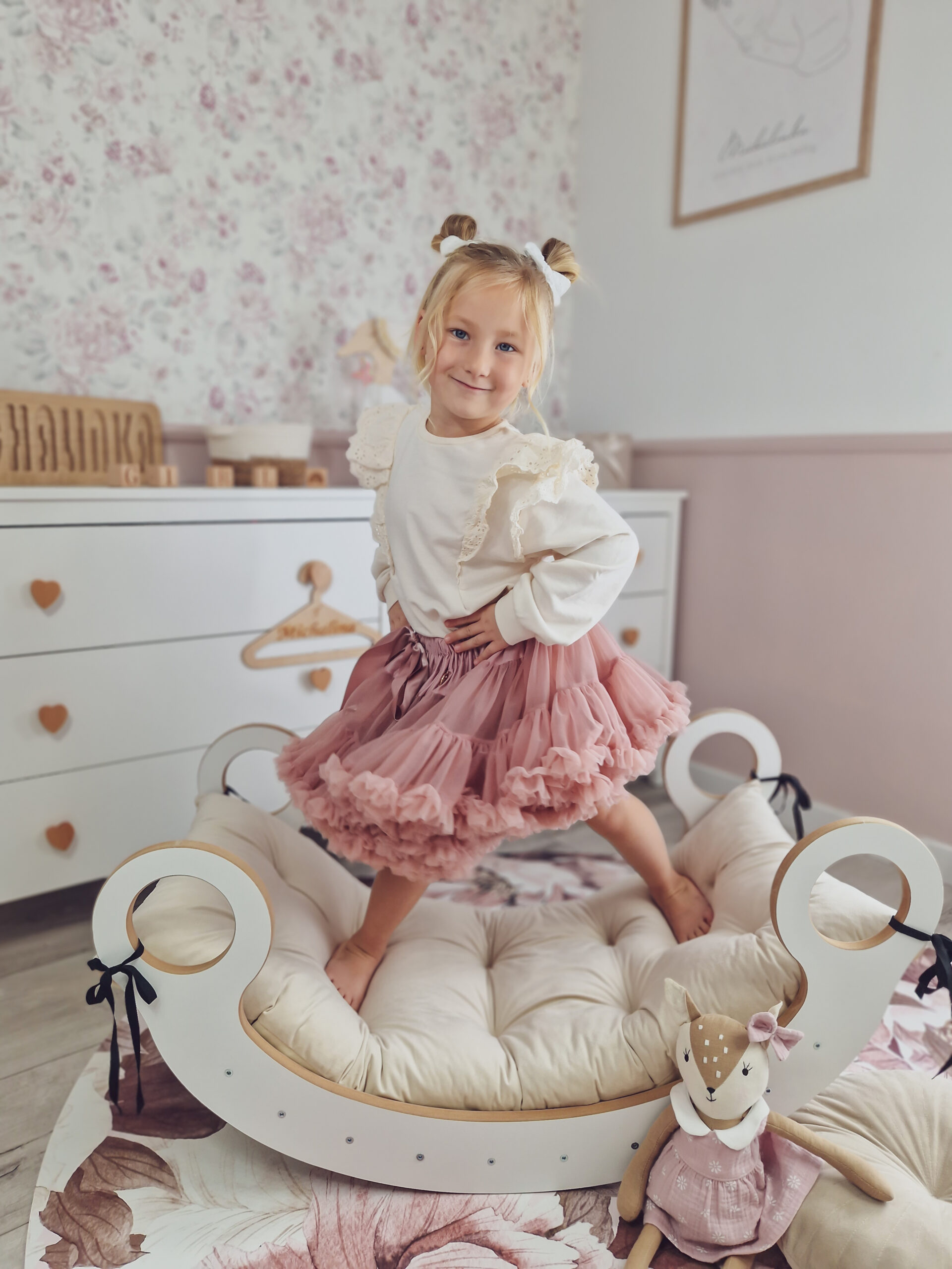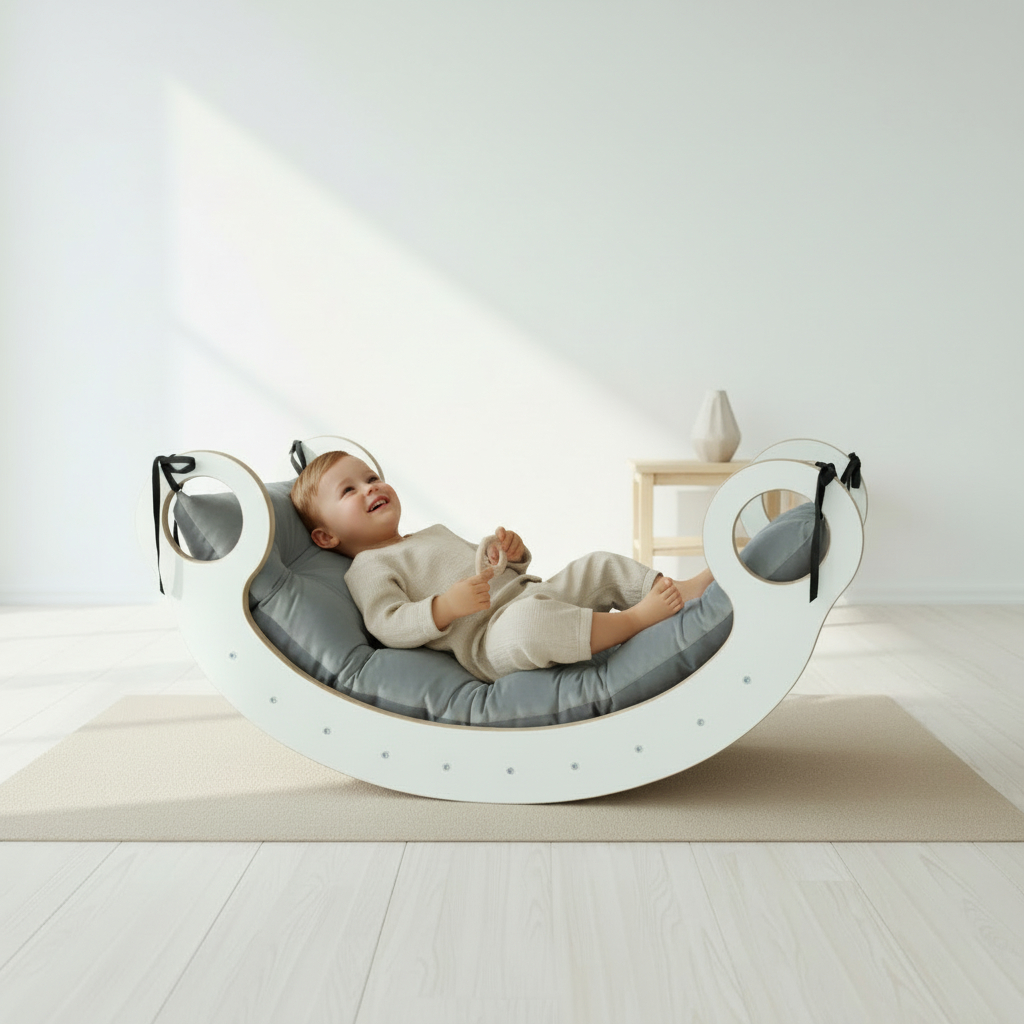 Die Montessori Wippe aus Holz ist ein vielseitiges Bewegungsspielzeug und zugleich ein funktionales Möbelstück, das den Alltag von Babys und Kindern spielerisch bereichert. Sie eignet sich perfekt für das Kinderzimmer, Spielzimmer oder Wohnzimmer und kann sowohl im Innenbereich als auch draußen verwendet werden. Als Teil eines Hindernisparcours, als Ruhezone oder für aktives Spielen bietet die Wippe viele Einsatzmöglichkeiten – besonders in den Herbst- und Wintermonaten. Im Sommer wird sie schnell zur beliebten Attraktion im Garten.