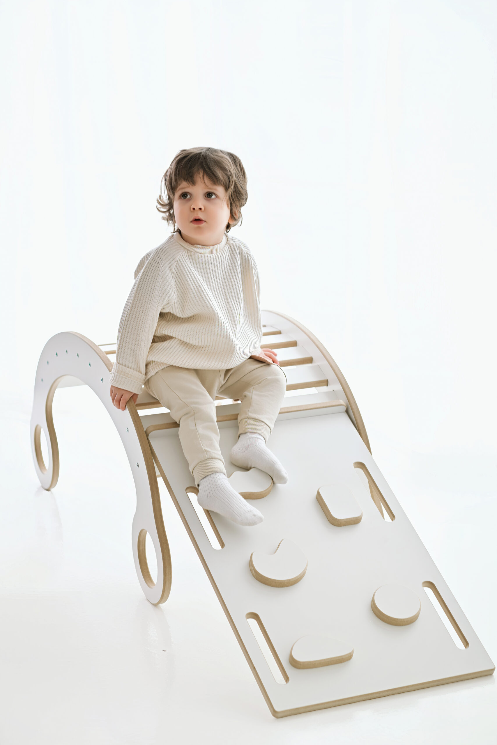 Natürliche Materialien, stabile Konstruktion und zeitloses Design machen dieses Spielgerät zu einer langlebigen Lösung für aktive Familien. Es unterstützt die motorische Entwicklung, regt Fantasie an und wächst mit dem Kind mit.