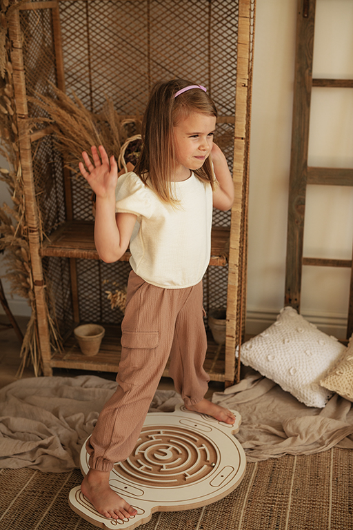 16. 16. Aufgrund der glatten Oberfläche der Plattform wird empfohlen, dass das Kind barfuß, mit Schuhen oder mit Socken mit rutschfester Sohle darauf steht.